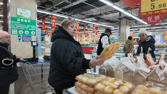 离境退税政策落地后,抚远市平步青云超市里热闹非凡。超市购物空间宽敞开阔,货架上商品琳琅满目、摆放整齐,日用品、服装、小家电、家纺、食品等品类一应俱全,为俄罗斯游客提供了充足的挑选余地。俄罗斯游客娜塔莎和同伴穿梭在货架间,不时驻足端详,细细挑选心仪的商品,一件件中国好物被陆续收入购物车中,尽显采购的愉悦与满足。