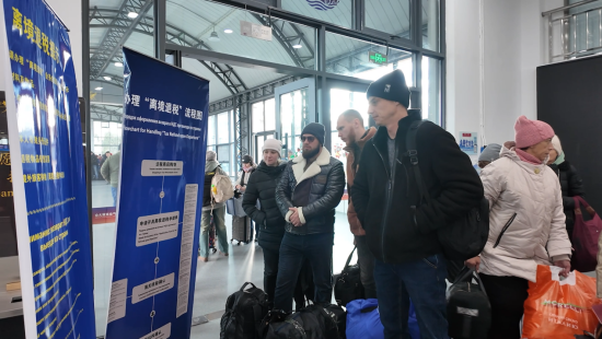 随着离境退税政策的实施,不少境外旅客已从中受益。抚远口岸出境大厅内,携带着中国商品的俄罗斯旅客有序排队,在抚远口岸退税窗口等待办理离境退税业务。工作人员熟练操作电脑,核对旅客的护照、退税单及购物凭证,整个流程高效顺畅,短短五分钟内,退税款便精准到账。