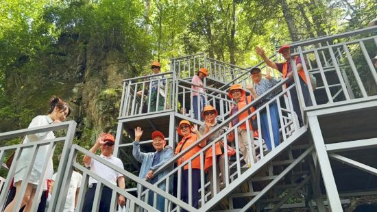 老人们在景区大自然的怀抱中舒展身心,感受伊春的生态魅力。(图片由市民政局提供)