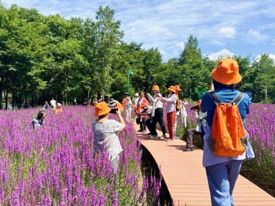 老人们在景区大自然的怀抱中舒展身心,感受伊春的生态魅力。(资料片)