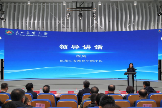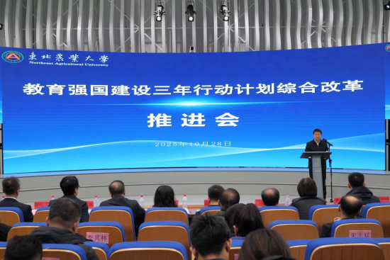 中新网黑龙江新闻10月28日电(徐小添)10月28日上午,东北农业大学教育强国建设三年行动计划综合改革推进会在成栋楼报告厅召开。此次会议恰逢全国深入学习贯彻党的二十届四中全会精神,围绕“推动高质量发展主题”“统筹教育强国、科技强国、人才强国建设”“加快建设农业强国”的重要时期,更是学校获批黑龙江省高等教育综合改革试点单位的关键节点。黑龙江省教育厅副厅长程爽,黑龙江省农业农村厅副厅长刘广宇,黑龙江省科技厅副厅长石兆辉,黑龙江省农业科学院副院长卢淑雯,北大荒农垦集团有限公司副总经理任淑兰,中粮贸易东北大区哈尔滨经营部副总经理葛君,省内高校代表,东北农业大学校长刘竹青、副校长姜毓君、刘忠华及相关职能部处、学院主要负责人和学生代表共百余人出席会议。会议由东北农业大学副校长孙世钧主持。