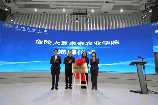 会上,程爽、刘竹青、卢淑雯、任淑兰共同为我校金陵大豆未来农业学院揭牌,这标志着学校在创新人才培养模式改革上迈出关键步伐。