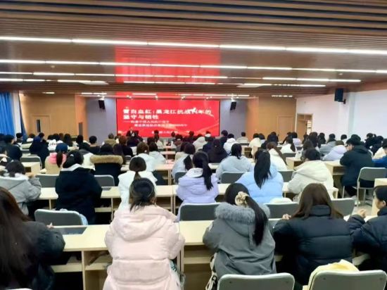 中新网黑龙江新闻10月29日电(记者 刘锡菊)为充分发挥红色文化育人功能,提升爱国主义教育在高校学生中的感染力。10月28日下午,东北烈士纪念馆流动展览小分队走进哈尔滨商业大学基础科学学院开展红色文化主题宣讲。活动现场座无虚席,全院师生共同重温红色历史,感悟红色精神。