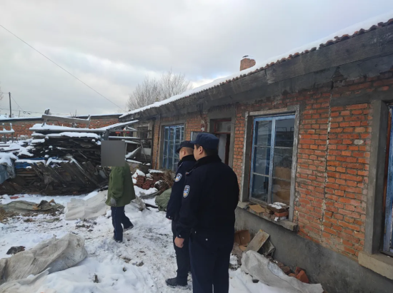 民辅警顶风冒雪,奔走在大街小巷,对辖区老旧房屋、户外广告牌、沿街商铺等地进行拉网式隐患排查,针对孤寡老人、困难家庭开展上门走访,排查用火用电安全隐患,用实际行动将隐患消除在萌芽状态。(完)