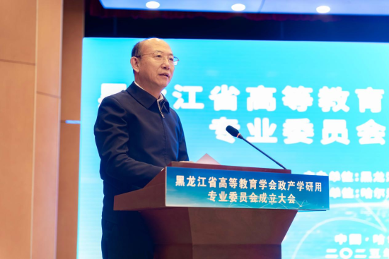 丁哲学代表省教育厅、省高等教育学会向专委会的成立表示祝贺。他强调,成立政产学研用专业委员会是推动教育强省建设、促进产教深度融合的关键举措,标志着龙江高等教育在服务区域发展中迈出新步伐。他对专委会未来发展提出三点希望:一要在服务宏观决策上展现新作为,打造高端智库;二要在促进要素流动上实现新突破,推动资源共享与人才共育;三要在深化育人改革上探索新路径,构建需求导向的人才培养新机制,真正成为链接各方的“枢纽”、激发创新的“引擎”、服务龙江的“标杆”。