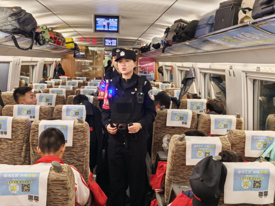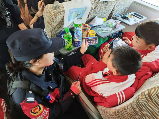 “车厢虽然不是赛场,但安全规则和比赛规则一样重要!”民警积极帮助学生们对号入座、妥善安置随身行李,并见缝插针地开展列车安全宣传。通过组织“安全微课堂”、发放温馨提示卡等生动有趣的形式,向小队员们讲解了乘车安全知识,有效提升了他们的旅途安全意识,车厢里充满了轻松愉快的氛围。
