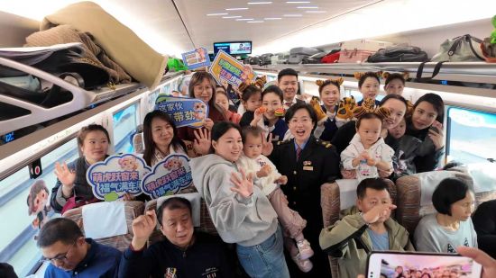 中新网黑龙江新闻11月5日电(孙涛)11月5日8时34分,G902次“萌虎”主题列车从哈尔滨西站驶出,开往北京。这趟由中国铁路哈尔滨局集团有限公司哈尔滨客运段打造的特色主题列车,以高铁为媒介将龙江地域文化与旅行服务深度融合,为旅客带来独特的出行体验,同时也拉开了冰雪旅游季的序幕。