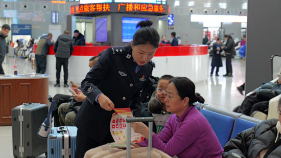 佳木斯站派出所民警向来往旅客讲解消防安全知识