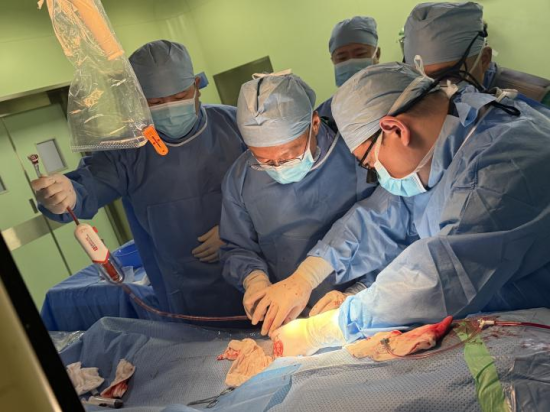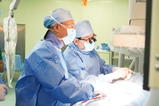考虑到刘大爷年事已高,且彩超下定位发现血管狭窄处位置较高,近乳突位置,还合并高血压等基础病,传统的颈动脉内膜剥脱术(CEA)需要在颈部做较长切口,剥离血管内膜斑块,创伤较大、恢复周期长,且术后存在神经损伤风险。为给患者提供更安全的治疗选择,孙占峰教授团队特邀上海复旦大学附属华山医院血管外科专家史伟浩教授远程会诊,并亲临手术现场指导。专家团队经过反复病例讨论,结合患者血管解剖结构和身体状况,最终决定采用经颈动脉血管重建术(TCAR)辅助下,行颈动脉球囊扩张、支架置入这一国际先进的微创技术。该手术无需大面积剥离血管组织,能最大程度减少对周围神经和组织的损伤,尤其适合高龄、合并症多的高危患者。