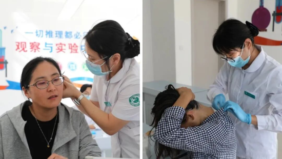 活动彻底突破了传统义诊单一的“健康咨询”模式,创新性地将一系列中医适宜技术“整体搬迁”至校园场景。现场,除了望闻问切、辨证施治的传统脉诊与健康咨询区外,最受师生欢迎的莫过于互动体验区。医师们手法娴熟地为长期伏案工作的老师们进行颈肩推拿放松;孩子们则对小巧的耳穴模型充满好奇,在医生的指导下,亲自体验耳穴压豆的微妙感觉,惊异于小小豆粒对身体的调节作用。