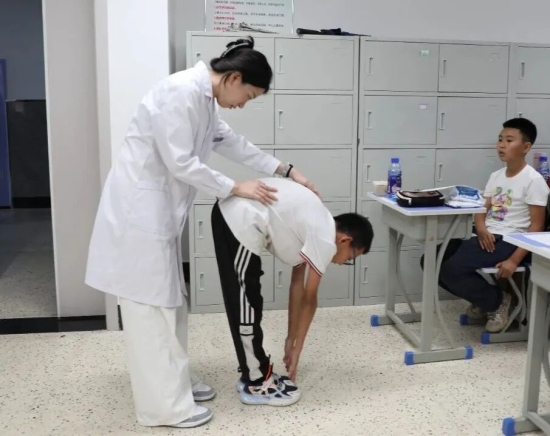尤为值得一提的是本次活动的“王牌”项目——脊柱健康筛查。青少年脊柱侧弯问题日益凸显,已成为影响孩子体态与健康的“隐形杀手”。该院在每次活动中都专门设置了脊柱健康筛查专区。由专业医生运用专业手法和简易工具,为学生们进行细致的脊柱形态初步检查和姿势评估,让学生们能及早发现问题,避免脊柱侧弯。