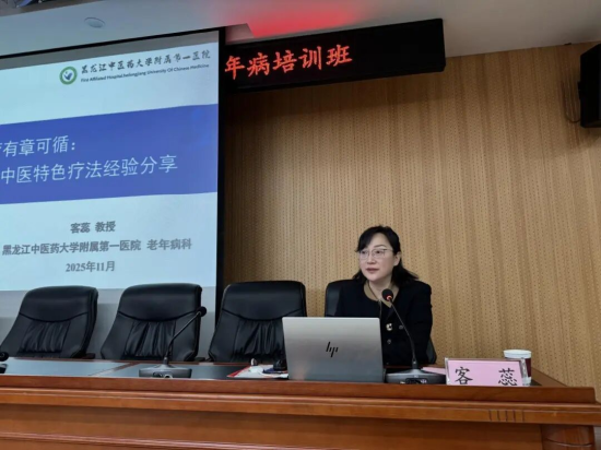 中新网黑龙江新闻11月11日电(刘璐)为积极应对人口老龄化挑战,强化黑龙江省中医老年病临床骨干人才队伍建设,充分发挥中医在防治老年病方面的独特优势,提升中医老年病诊疗水平与临床实践能力,11月7—8日,由黑龙江省中医药管理局主办、黑龙江中医药大学附属第一医院承办的“2025年黑龙江省中医药临床骨干人才培训项目中医老年病培训班”在医院传承楼17楼会议室举办。黑龙江省中医药管理局科教处处长黄文静,黑龙江中医药大学附属第一医院党委副书记、副院长、工会主席陈光,老年病科主任客蕊出席开班仪式并致辞,继续教育科科长王颖主持会议,来自全省各地200余名医务工作者参加学习。