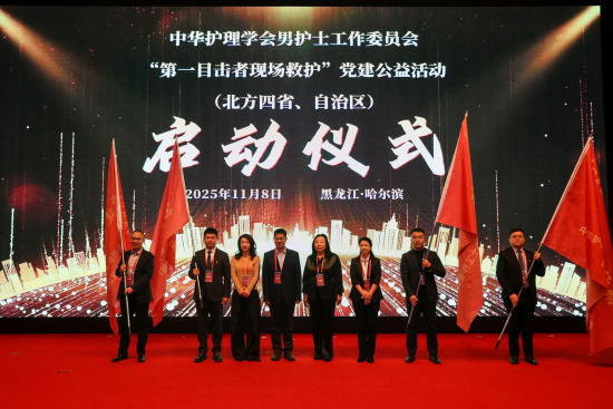 随后,现场举行了中华护理学会男护士工作委员会“第一目击者现场救护”党建公益活动北方四省、自治区及黑龙江地区启动仪式,旨在提升公众急救意识,发挥男护士在急救科普与实践中的先锋作用。