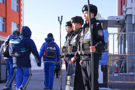 针对冬季校园周边治安规律特点,伊春公安科学部署警力,推行“定点+流动”“车巡+步巡”相结合的护学勤务模式,在各中小学校、幼儿园上下学高峰时段,设置固定护学岗,加强校园及周边秩序维护和交通疏导,组织机动巡逻组,在校园周边主干道、背街小巷开展动态巡逻,做好突发事件应急处置,及时响应涉校警情,为学生及家长带来满满的安全感。“我们要做到‘点上有人守、线上有人巡、面上有人控’,让孩子们始终处在安全的防护网中。”民警在执勤时说道。