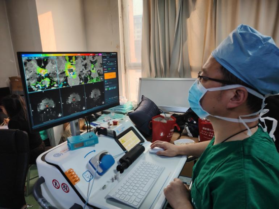磁共振室内,MDT团队在实时MRI监测下对病灶进行激光消融