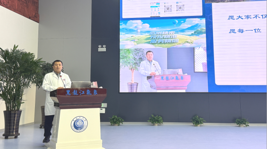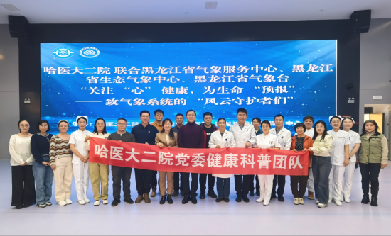 活动首先由黑龙江省气象服务中心黄英伟副主任致辞。他指出,气象工作者承担气象监测、灾害预警等重要职责,长期面临高强度工作与应急值守任务,心血管健康保障需求迫切。此次联合哈医大二院开展科普活动,既是贯彻“健康龙江建设”战略、落实全国卫生与健康大会精神的具体实践,也是关爱气象工作者身心健康、夯实气象服务保障基础的重要举措。