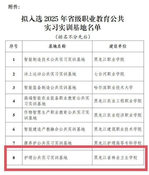 黑龙江省林业卫生学校成功入选省级职业教育公共实习实训基地