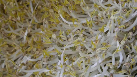 建厂之初,刘正斌既当技术员又当销售员,从选豆、泡豆到培育、采收,每一个环节都亲力亲为。如今,工厂已建立起标准化的生产流程,成为雅尔塞镇推动本土产业规范化发展的一个缩影。每日清晨,工人精选优质绿豆浸泡,待种子萌发后移入培养箱,在精准控温、保湿的环境中经过7~8天的培育,一颗颗脆嫩鲜美的绿豆芽便可出箱上市。