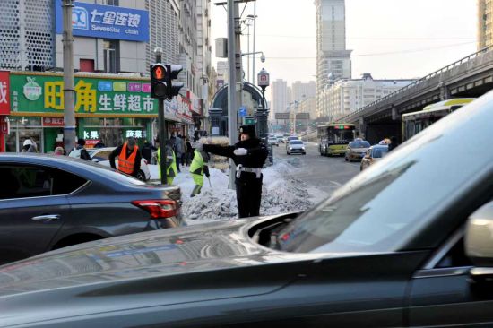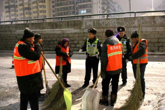 为配合高效清雪,交管部门加强与城管、应急、气象、交通等部门的联勤联动。巡逻警力主动对接清雪作业单位,在结冰积雪严重路段提前部署清雪机械,保障清雪作业快速、安全开展。执勤民警在清雪路段加强交通疏导,清理占道违停车辆,并通过警车护航、现场提醒等方式,确保清雪人员作业安全,共同守护市民出行通道。