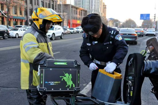 14时30分许,执勤警力在辖区路段开展巡查时,查获另一辆外卖两轮电动车。经检查发现,驾驶人为延长续航时间,擅自加装了一块不符合出厂额定电压的蓄电池,且线路连接杂乱。民警当场告知驾驶人,非法改装电池会改变车辆电路负荷,充电和行驶过程中极易引发短路、过热,进而导致火灾事故,对自身及周边群众生命财产安全构成严重威胁 。目前,民警已责令驾驶人现场拆除非法加装电池,并依法进行后续处理,同时对其开展交通安全警示教育。