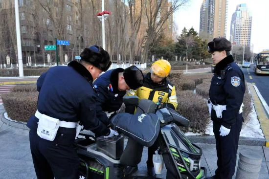 中新网黑龙江新闻11月30日电(赵旭)时值冬季旅游旺季,为切实规范电动车通行秩序,防范化解道路交通安全风险,同时守护来哈游客出行安全、维护冰城旅游城市形象,哈尔滨市公安局交管部门聚焦电动车非法改装等突出违法行为,开展专项整治行动,以“执法+教育”相结合的方式,从严查处电动车改装音响设备、改装灯光、解除限速、换超标电池等行为,全力守护市民与游客的出行安全。