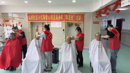 “益起理发吧”项目源于网格员的一次入户走访。走访中发现,许多高龄、空巢、独居老人和残疾人群体存在“理发难、理发贵”问题。社区党委随即整合资源,动员辖区内有理发技能的党员志愿者、热心居民和爱心商户,组建起一支支义剪服务队。志愿者刘阿姨原本是名理发师,退休后主动加入服务队。“能用一技之长为邻里做点事,心里特别踏实。”她边说边熟练地为老人理发,“看着老人们理完发精神抖擞的样子,我也感到幸福。”除了定点服务,各社区还建立了特殊群体上门服务机制。通过网格员摸排,将行动不便的老人登记在册,由志愿者提供上门理发服务。一把剪刀、一颗爱心,解决了特殊群体生活中的“头”等大事,也剪出了邻里守望相助的温情。