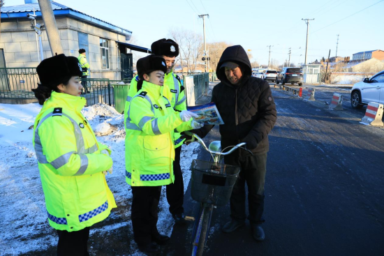 中新网黑龙江新闻12月3日电(赵威华)12月2日是第14个“全国交通安全日”。当天,齐齐哈尔铁路公安处交通管理支队精心谋划、周密部署,组织富裕中队深入辖区重点铁路道口及周边人员密集区域,开展了一场交通安全宣传教育活动。