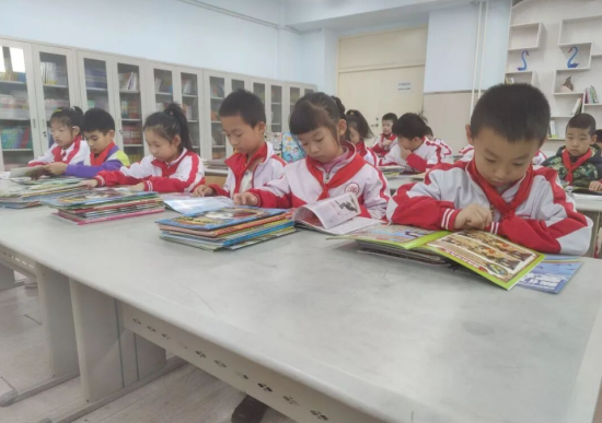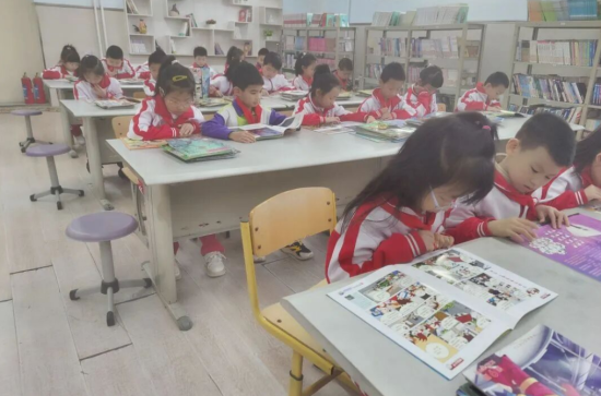活动中,孩子们沉浸在绘本、科普读物、历史典籍等各类书籍的世界里。他们时而专注翻阅,时而轻声交流书中趣事,校园分馆内满是浓郁的书香与童真的专注。书架上琳琅满目的图书资源,为孩子们搭建起知识的桥梁,让他们在阅读中探索未知、启迪思维。