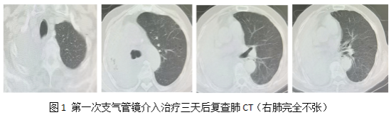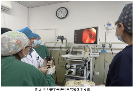 “老人高龄,手术风险倍增,但放任不管就是眼睁睁看着生命流逝。”呼吸内科于世寰主任牵头,联合麻醉科等部门反复评估,并与家属充分沟通后,11月14日,在麻醉科文质斌医生配合下,于世寰主任和张春玲副主任医师、吴昊岚主管护师一起率先为老人实施支气管镜下削瘤治疗。术后老人呼吸一度好转,但镜下削瘤治疗新生物进展较快,三天后,唐爷爷病情突发反复,右肺完全不张,呼吸功能再次衰竭。