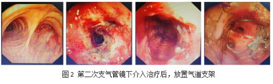 通路打通后,于世寰主任精准测量狭窄段长度,一枚40mm×12mm的镍钛合金支架被送入气道。在体温作用下,这枚“记忆金属”支架缓缓张开,完美贴合支气管壁,稳稳撑起呼吸通道。
