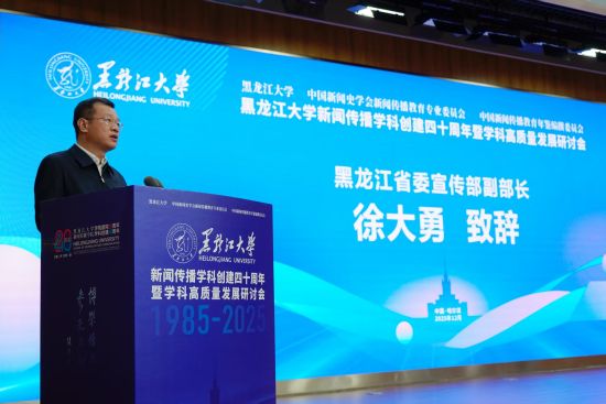 黑龙江省委宣传部副部长徐大勇肯定了该学科在构建龙江主流思想舆论、夯实区域舆论阵地、服务地方经济社会高质量发展中,始终坚守初心、主动履职的使命担当。他期待与会专家立足时代视野、结合行业前沿建言献策,为全媒体时代新闻传播教育提质升级、新形势下新闻舆论工作注入新动能。