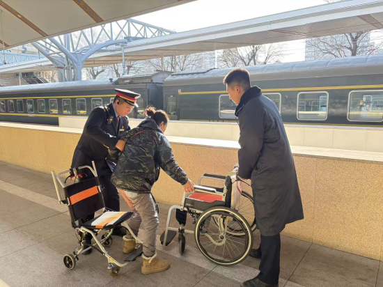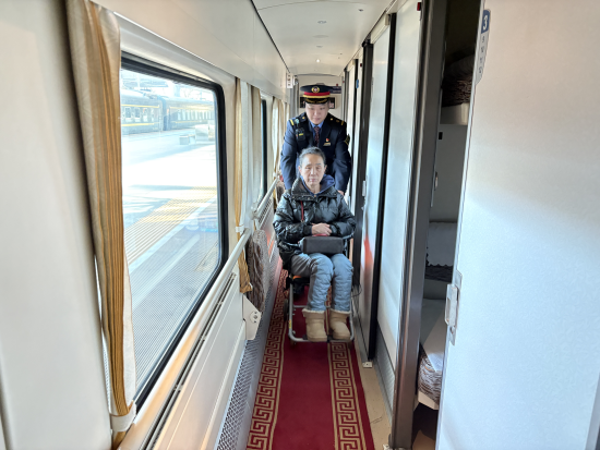 中新网黑龙江新闻12月8日电(桑月颖)“以前最怕坐火车,轮椅太大进不了车厢,车门口到铺位那几步路是真难,现在有了这个‘小神器’,心里踏实多了!”12月7日,一位因膝盖手术行动受限的老人对列车长郜俊龙准备的“便携折叠轮椅”赞不绝口。