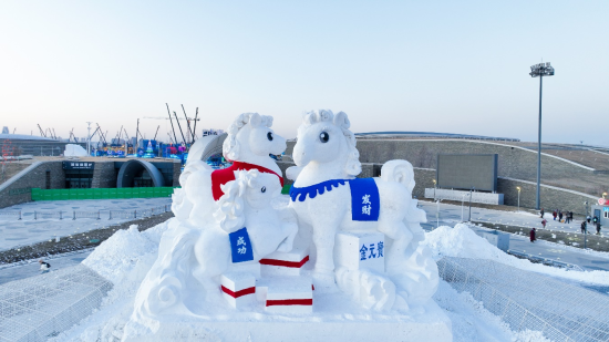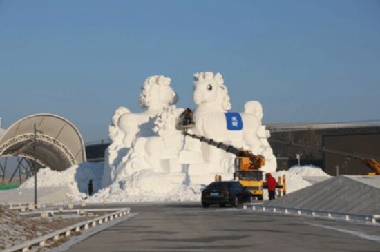 为迎接即将到来的生肖马年,哈尔滨冰雪大世界结合“冰天雪地 童话世界”主题,对雪雕形象进行了童话主题创作,同时听取游客意见,雕刻了小马一家四口。