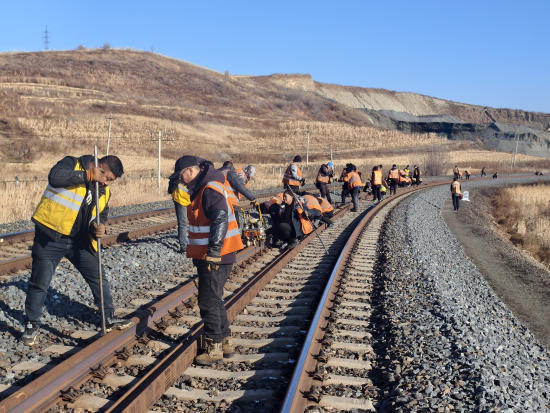 在施工人员的努力下,钢轨顺利合拢,当日14点30分,达到开通条件后,施工负责人赵岩通知开通线路。此次施工一并完成了该条小半径曲线的几何尺寸精调,胶粘接头、恢复锁定轨温等工作,极大地提升了线路的稳定性。