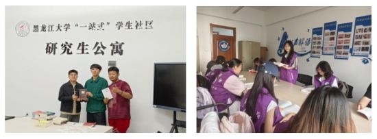 黑龙江大学法学院强化政治引领,深化“党建+治理”模式,制定《法学院“一站式”学生社区建设实施细则》,做好顶层设计,把准育人方向。围绕启航、领航、护航、远航四个阶段,将学生思政教育、学风建设、就业指导、心理帮扶等有机融合,深入公寓开展读书日活动、消防安全培训、党员座谈、毕业生文明离校教育等,实现与学生“同场域”交流,拉近心理距离。精心设计“寝室+”系列活动20余次,在校第二十五届寝室文化节获表彰14项,覆盖一二三等奖,数量位居全校第一;共计29间学生寝室获评“五好寝室”荣誉称号,约占获奖总数的12%,获评数量比位居全校第一;相关社区项目获批校级以上2项。