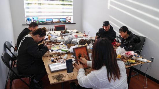 松树塔、树枝、树木边角料等林下剩余物,多是被丢弃的“无用之物”。图强林业局精准捕捉资源循环利用新机遇,打破传统思维局限,聚焦“生态赋能、创意增值”,组织技术骨干成立创作小组、团队,对原材料进行精细化分拣,剔除杂质、反复清洗、自然晾晒,保留其天然肌理与原生质感,再经精准切割、细致打磨、创意拼接等多道工序,成功打造出5类70余件特色工艺品,涵盖摆件、挂件、装饰画等多个品类。