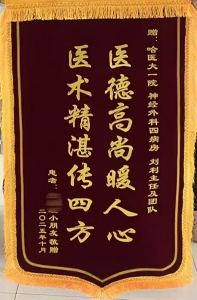 术后困扰患儿三年的抽搐症状已完全消失,未出现任何神经功能损伤。患儿术后一个月复查,脑电图显示基本正常。患儿家属赠送锦旗时激动地说:“看到孩子现在这么健康,我们心里的石头总算落地了。非常感谢哈医大一院这些优秀的专家和护理团队。”