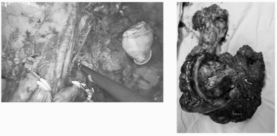 术中探查发现,患者肿瘤广泛侵犯乙状结肠、直肠、部分回肠、膀胱、左侧输尿管及阴道断端,并与左侧髂内血管紧密包裹,分离难度极大,稍有不慎即可引发致命性大出血。历经8小时的精细操作,朱跃坤教授团队最终完成整块切除,并同期实施淋巴结清扫、肠造口、输尿管造口及生物补片盆底重建,术中出血仅200毫升。
