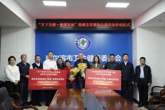 中新网黑龙江新闻12月13日电(周姿杉)近日,“天下无癌·健康冰城——哈尔滨市消化系统肿瘤和‘四高’免费检测项目肠癌患者援助公益活动”正式启动。本次活动由哈尔滨市卫健委联合华大猛犸基金会、长江商学院校友会基金共同举办,现场正式启用“天下无癌—哈尔滨市消化系统肿瘤和‘四高’免费检测项目肠癌患者援助公益平台”,由民政部门确认的结直肠癌低保患者每人获得2万元公益援助金,为该市困难群体送去精准帮扶,标志着这场融合基因科技与民生关怀的公益行动全面落地。