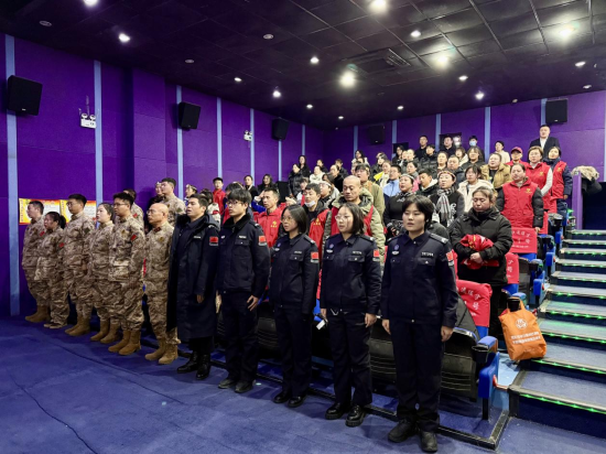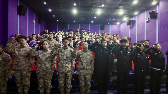 活动设置和平许愿签名、一分钟默哀、观看影片等环节,环节衔接紧凑,氛围庄重。默哀时刻,全体人员脱帽肃立,静默无言中传递对南京大屠杀遇难同胞的深切哀思;观影过程中,大家跟随影片情节重回88年前饱经劫难的南京城,直观感受民族曾承受的深重苦难与不屈抗争。影片结束后,全场起立高唱国歌,激昂旋律中饱含对先烈的追思与对祖国的赤诚;退役军人代表带领全体人员庄严宣誓,让铭记历史、珍爱和平的信念深入人心,将爱国情怀与责任担当转化为砥砺奋进的力量。