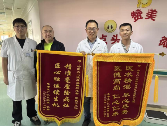 患者术后顺利出院,患者家属向陈晓宁教授团队赠送锦旗