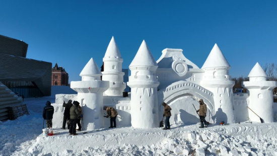 中新网黑龙江新闻12月8日电(代阳 朱景颐)连日来,位于抚远市三江自然生态馆门前广场的莓莓熊主题冰雪乐园建设现场一派繁忙景象。伴随着机器轰鸣声和工人忙碌的身影,一个梦幻的冰雪世界正从蓝图一步步走向现实,将为抚远冬季旅游再添新亮点。