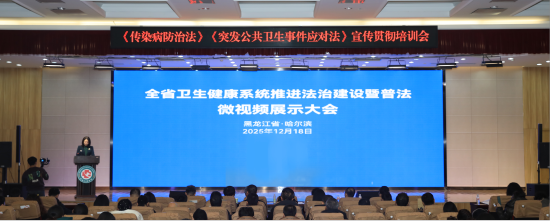 中新网黑龙江新闻12月19日电(程岩)12月18日,黑龙江省卫生健康系统推进法治建设暨“青声说法·健康护航”普法微视频展示大会在哈尔滨召开。会议总结“十四五”期间全省卫生健康系统法治建设成效,展示普法创新成果,部署“十五五”时期重点任务。