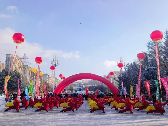 启动仪式前,天水湖公园小广场上,一场别开生面的冰雪主题现场展演活动热烈展开,威风锣鼓舞龙气势磅礴,太极扇刚柔并济,健身气功沉稳舒缓,广场舞活力四射。