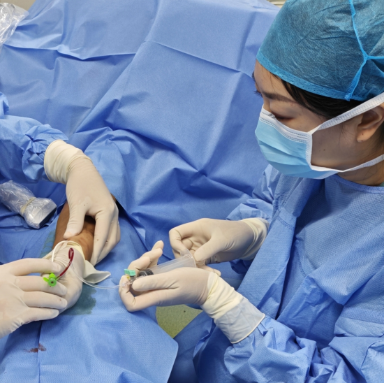 经过充分的术前准备,手术在局部麻醉下进行。肾内科医护团队在超声实时引导下,经皮穿刺建立微小通道,将球囊导管精准送达血管狭窄部位。通过压力泵充盈球囊,轻柔扩张狭窄血管壁,直至血管管径恢复正常,手术顺利完成。超声引导下动静脉造瘘后球囊扩张术(PTA)的过程创伤小,仅留下穿刺点痕迹,且出血少、痛苦轻,时间短、安全性高。术后患者无需卧床静养,很快便可正常活动,次日即可顺利进行血液透析。