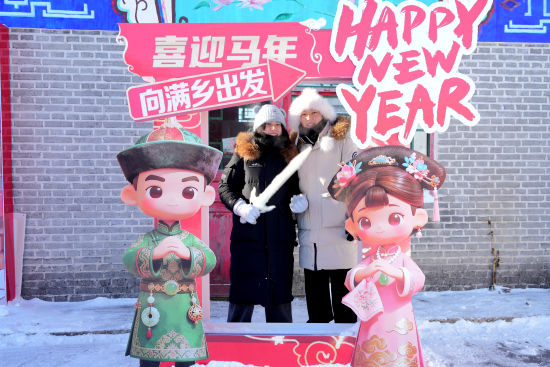 图为游客在满乡IP人物打卡点合影留念(樊思雨 摄)
