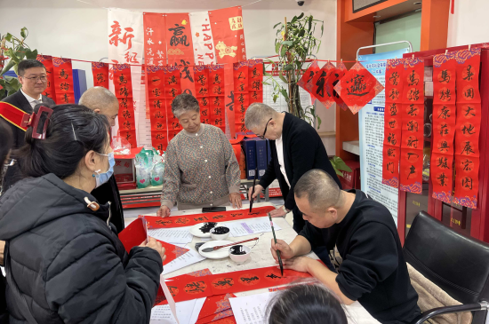 中新网黑龙江新闻2月9日电(苏蕾)新春将至,年味渐浓。2月4日,哈尔滨银行第八届“翰墨飘香迎新春”写福送春联活动正式启动。活动特邀黑龙江书法家协会书法家、哈尔滨银行书法协会会员及书法爱好者、非遗协会会员共同参与,现场为客户与员工书写春联、“福”字,并精心制作彩绘团扇、非遗拓印等传统手工艺品,以笔墨传递祝福,以艺术温暖人心。