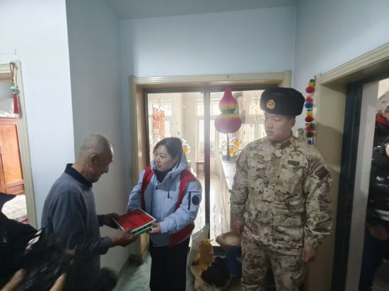 中新网黑龙江新闻2月11日电(吴昌林)在新春佳节来临之际,为赓续拥军优属、拥政爱民的优良传统,深化军民鱼水深情,切实把党和政府的关怀、社区群众的温暖以及爱心企业的善意送到一线武警官兵、困难群众和新就业群体心中,2月10日,香坊区委组织部、区委武装部、区委社会工作部与通天街工委联合发力,在二三五处社区精心开展迎新春拥军爱民志愿服务活动,以烟火温情绘就军民同心、邻里和睦、政企联动的新春画卷,让这个冬天因坚守而温暖,因奉献而有光。