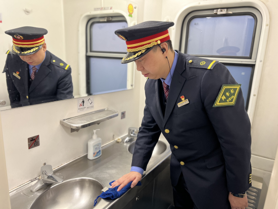 列车一路向北,天色暗淡,车厢渐静,不少旅客进入梦乡。张磊依旧穿梭在车厢里,提醒乘务员为熟睡的旅客盖好衣被、检查热水供应、清理过道杂物。“旅客出门不容易,多搭把手、多问一句,旅途就暖一点。”张磊总这样对班组伙计说,也是这样做的。