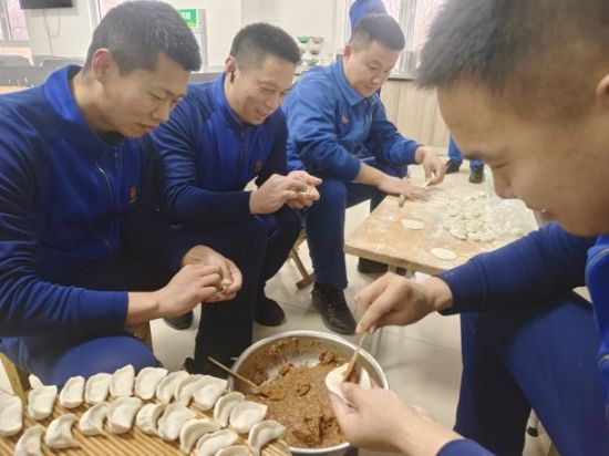 除夕夜,各驻防营区暖意融融,队员们围坐包饺子、贴福字,通过屏幕与东北家人“云团圆”—一头是亲人的牵挂叮咛,一头是“火焰蓝”的坚定担当。